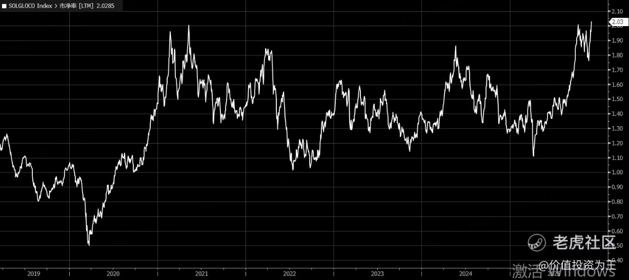 另外,从估值上看,Solactive全球铜矿指数的市净率达到了2倍,位于近10年来高位: