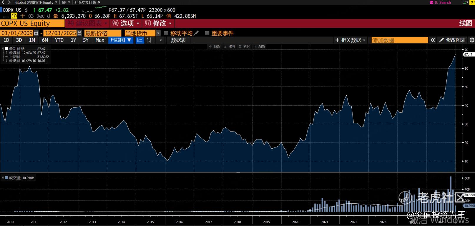 因此,如果你看好铜价继续上涨,不妨考虑海外铜矿股,但考虑到普通投资者对铜周期欠缺了解,直接买矿股,风险较大,不妨考虑指数ETF,像Global X铜矿ETF。 $铜矿ETF-Global X(COPX)$
