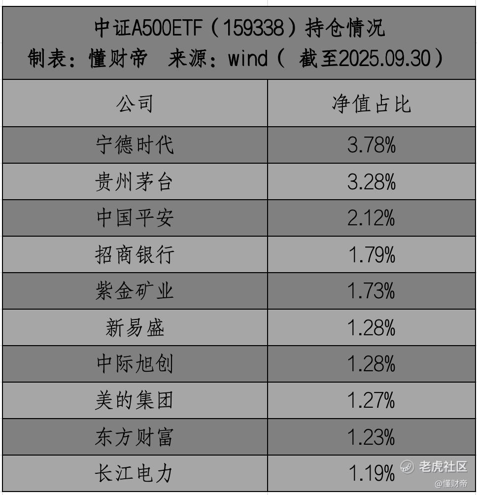 中证A500ETF(159338)紧密结合市场趋势,持仓包含前两年备受关注的新能源龙头企业,传统核心资产的老牌代表,也包含今年行情火热的“易中天”中的两家企业。