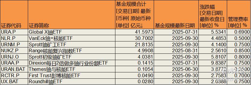 Global X铀ETF管理费用率为每年0.69%,位于核能ETF中值水平。