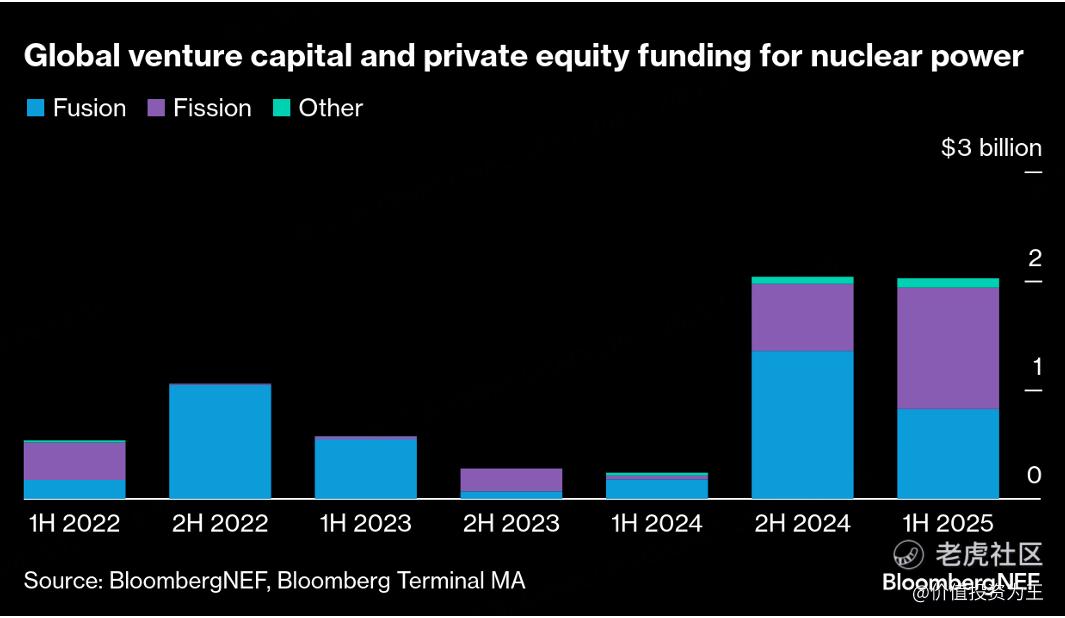 在一级市场,自2022年以来,核电初创公司通过风险投资和私募股权融资了67亿美元,主要集中在2024年下半年和今年上半年: