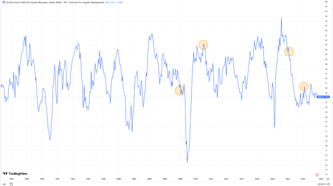 其中2011和2022年是比较好判断的,因为PMI在高位已经有了趋缓的迹象,2008年和2024年从PMI上不好判断,但当然,方法又不是只有一个