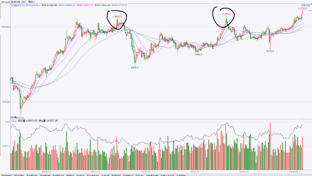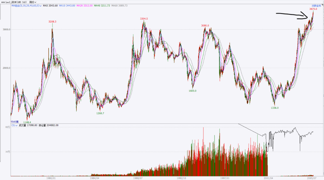 而我们今天讨论的是全历史最高的铜价,这种多重复合的顶部被打开,上一次可以类比的时候可能还是2004-2005年