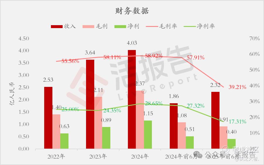 收入分别约为人民币2.53亿、3.64亿、4.03亿、1.86亿、2.32亿,2025年前6月同比+24.68%;