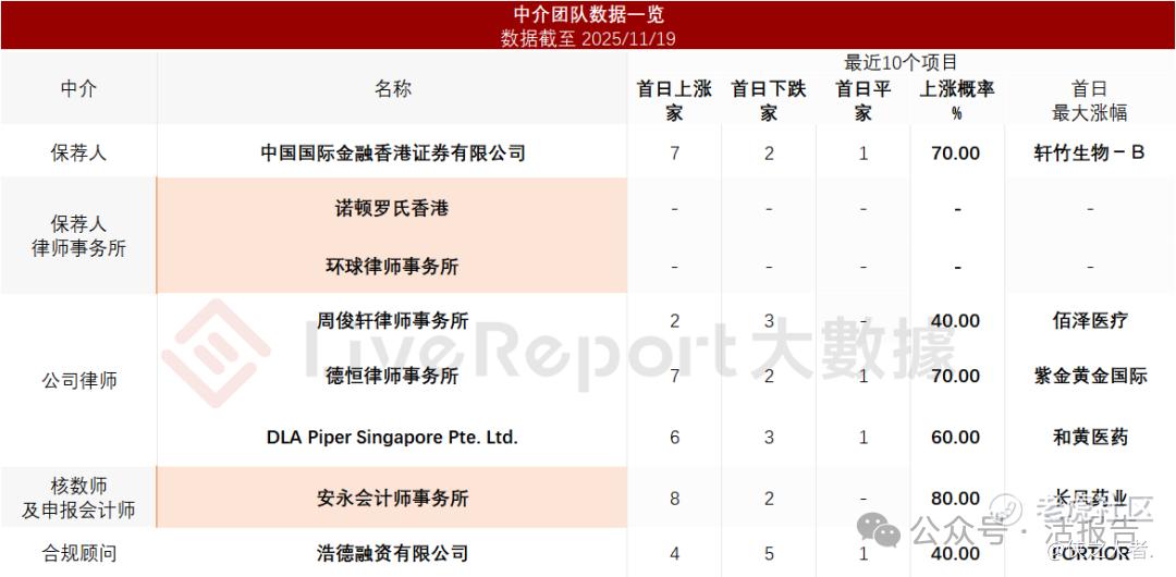 据**大数据统计,诺比侃中介团队共计9家,其中保荐人1家,近10家保荐项目数据表现尚可;公司律师共计3家,综合项目数据表现有待提升。整体而言中介团队历史数据表现中规中矩。