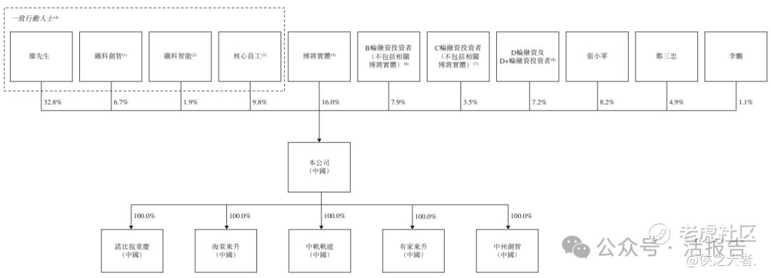 廖先生直接持股32.8%,与铁科创智等一致行动人合计持股51.2%;