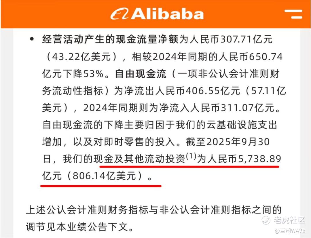 截至2025年9月底,京东现金及短期投资总额为1982.72亿元,阿里巴巴依旧是“现金王”,现金及其他流动投资的总额为5738.89亿元,仍然位列全行业现金流第一。美团的情况要更严重一些,激烈的竞争导致其现金消耗速度较快。