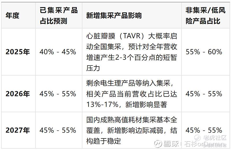 基于2025年中的营收结构及集采推进节奏,对未来三年公司营收结构预测如下: