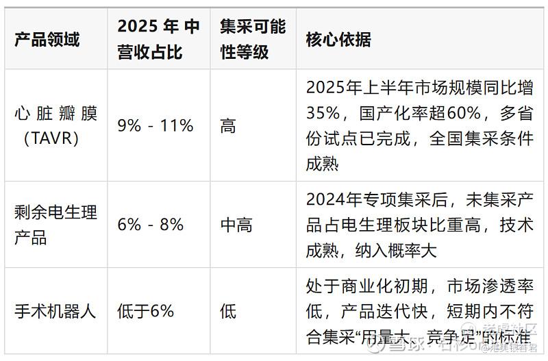 以下产品线因技术迭代快、市场处于早期或主要面向国际,短期内集采风险较低。