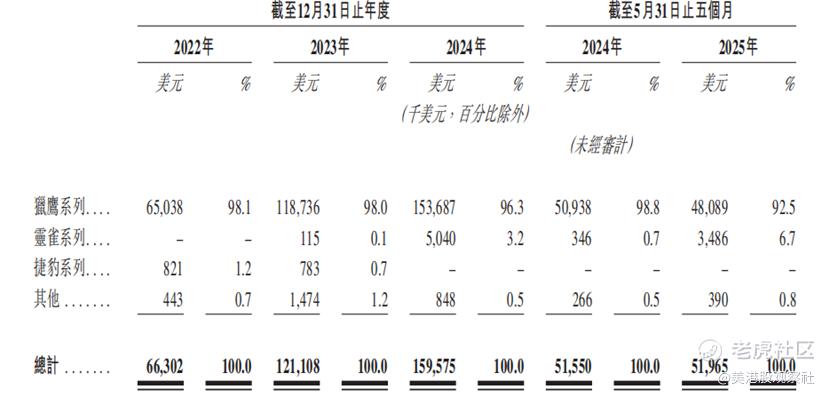 从收入结构来看,公司收入高度聚焦于核心产品与核心市场。按产品划分,猎鹰系列是主要收入来源,2022年、2023年、2024年及2025年前五个月,猎鹰系列收入分别为65,038千美元、118,736千美元、153,687千美元及48,089千美元,占同期总营收的比例分别为98.1%、98.0%、96.3%及92.5%;灵雀系列自2023年起逐步贡献收入,2024年及2025年前五个月收入占比分别提升至3.2%及6.7%,成为增长新动力;其他收入(含OmniVidi软件)占比始终保持在1%左右,尚未形成规模效应。按地域划分,中国市场是核心收入来源,2022年至2025年前五个月,来自中国市场的收入占比分别为98.7%、97.0%、97.5%及96.3%,海外市场(美国、德国、法国等)收入占比不足4%,未来全球化拓展仍有较大空间。