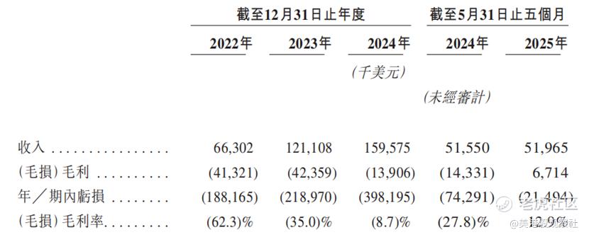 盈利端,公司虽仍处于亏损阶段,但亏损幅度持续收窄,2022年、2023年、2024年及2025年前五个月,年/期内亏损分别为188,165千美元、218,970千美元、398,195千美元及21,494千美元,2025年前五个月亏损较2024年同期大幅收窄71.1%,主要得益于规模效应提升与成本优化。而按照非国际财务报告准则计算,公司调整后的净亏损分别为142,989千美元、137,209千美元、82,899千美元及18,706千美元,2025年前五个月调整后亏损同比收窄了63.2%。