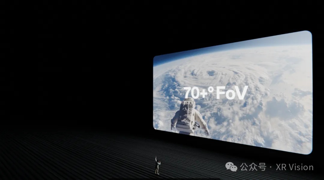 Project Aura基于BirdBath方案的OST(光学透视方案),以Apple Vision Pro不到1/6的重量,实现了Meta Orion一样的70度视场角,这也是目前OST方案实现的最高视场角,比目前市面上大部分50度左右的视场角有了很大的提升,而这个提升对于OST方案的AR体验来说,可以说是质的飞跃。