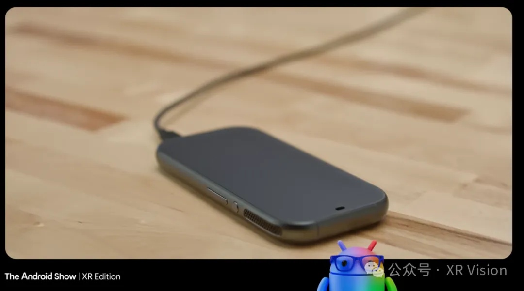 主机搭载的是三星Galaxy XR搭载的同款高通骁龙 Qualcomm XR Gen 2 Plus芯片,可以为眼镜提供强大的算力,Google的Android XR系统就是跑在这个盒子上。由于主机还要提供电源,所以现阶段还必须通过一根DP线连接眼镜。眼镜则采用的是MicroOLED的方案,大概率采用的依然是索尼的MicroOLED光机,可以实现单眼1080P或更高的分辨率。用过XREAL产品的朋友就会知道,显示画面的清晰度是非常有保障的。