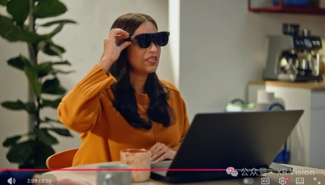 从视频中我们可以看出,硬件形态上,Project Aura采用的是此类AR眼镜常用的分体式硬件方案设计。轻便的墨镜形态的眼镜加上小巧主机的组合,让产品在拥有绝佳的轻便性和可移动性的同时,还拥有了笨重的Apple Vision Pro等VR设备的空间运算能力。