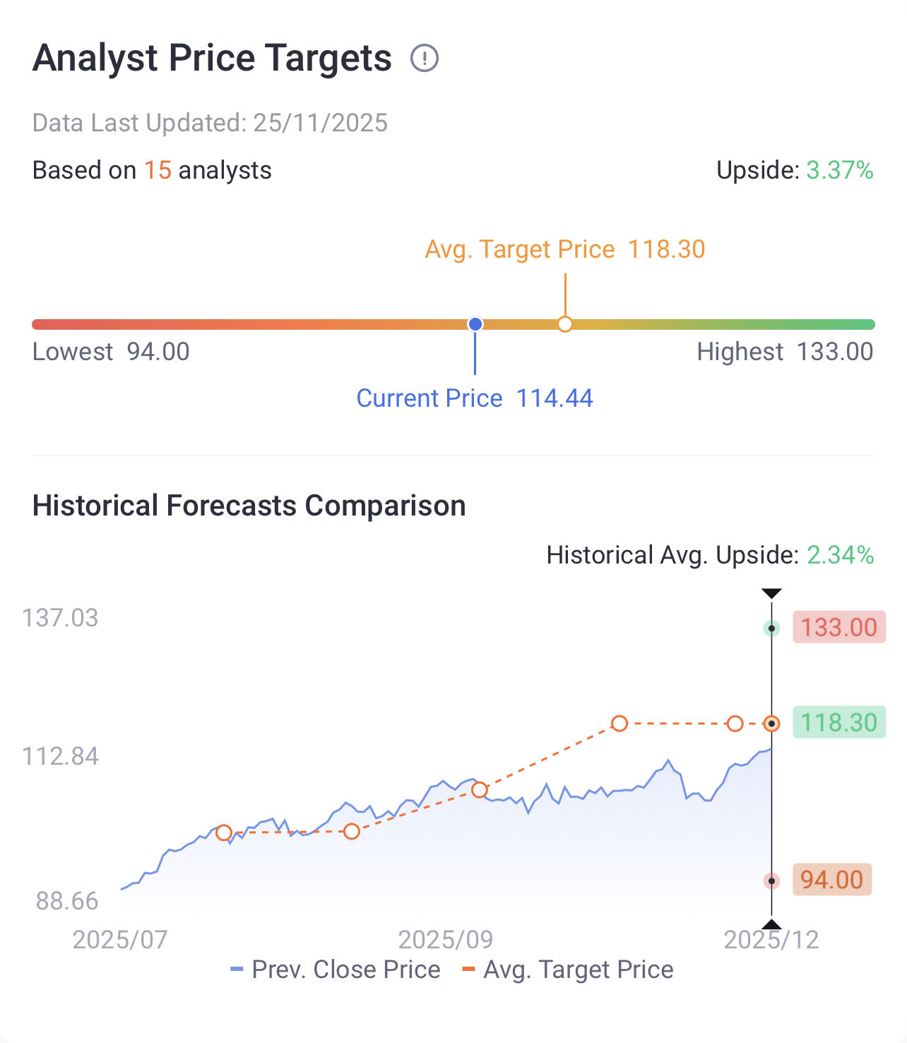 最新财务亮点:2025年第三季度,净收入创下了151.8亿美元,同比增长20%,其中投资银行费用激增42%(并购咨询增长60%,债务承销增长38%),资产与财富管理收入增长17%,达到了44亿美元。净收入跃升37%,达到了41亿美元,稀释后每股收益为12.25美元,ROTC提高至14.2%。公司通过回购和股息向股东返还了32.5亿美元,并重申了2025年效率目标为低于62%。