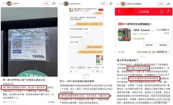 线下海尔门店、卡萨帝专卖店、三翼鸟门店多轨并行,线上电商大促与经销商私域出货形成价格倒挂——某型号电冰箱长期标价12999元,大促期间却能探底至5156元,价差超7000元;县域经销商为完成任务降价保量,甚至出现样机5折甩卖的情况。价格体系的崩塌,让不少消费者质疑其“高端”是“高价”的代名词,而非技术与服务的价值兑现。