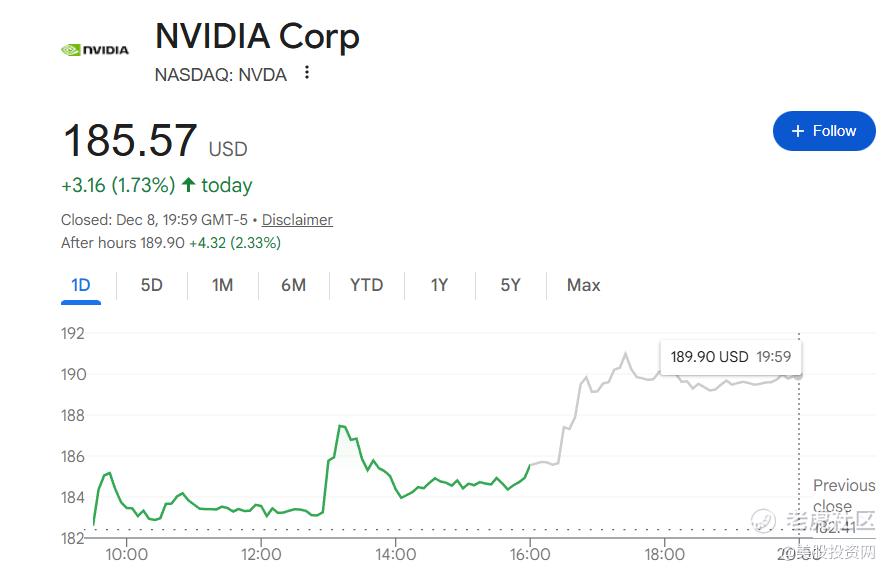 在特朗普宣布这一消息后,英伟达股价在盘后交易中上涨超2%,股价再次逼近190美元。