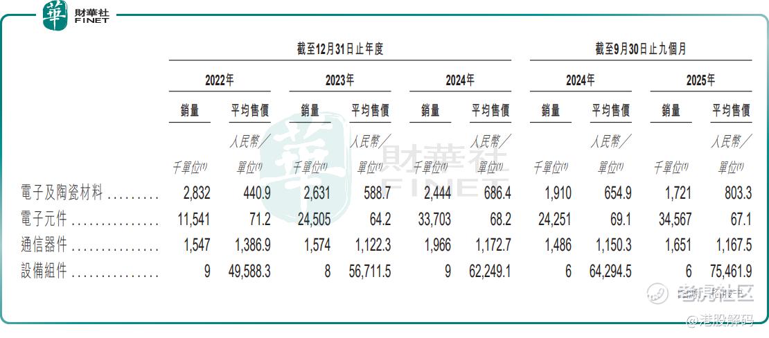 值得一提的是,从产品近年的价格来看,电子及陶瓷材料的平均售价在持续增长,不过销量在走低;电子元件、通信器件的平均售价出现波动,但胜在销量持续攀升。