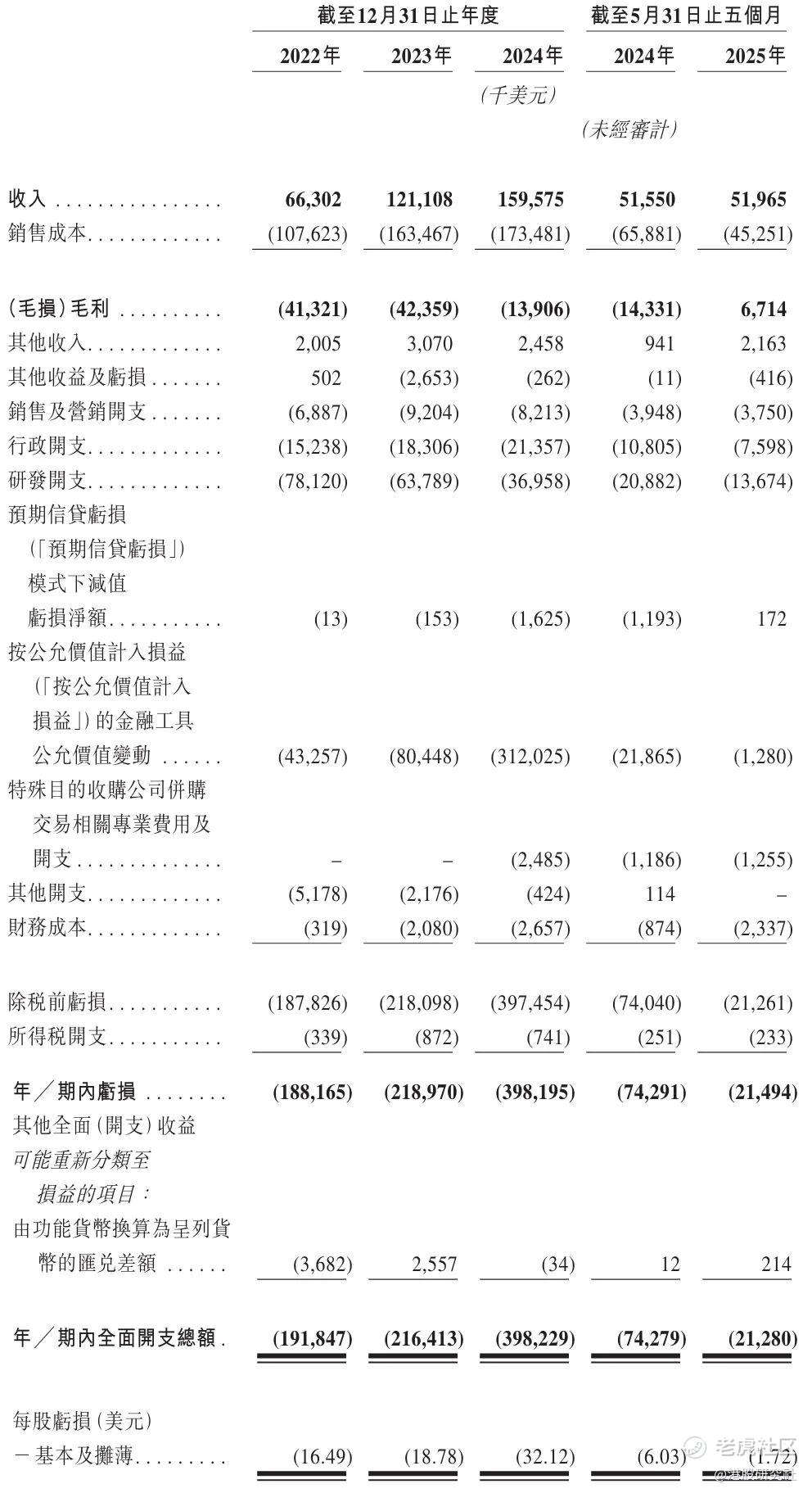 招股书显示,图达通2022年、2023年、2024年营收分别为6630万美元、1.21亿美元、1.6亿美元;期内亏损分别为1.88亿美元、2.18亿美元、3.98亿美元;2025年前5个月营收为5196万美元(约3.67亿元),期内亏损为2149万美元(约1.52亿元)。