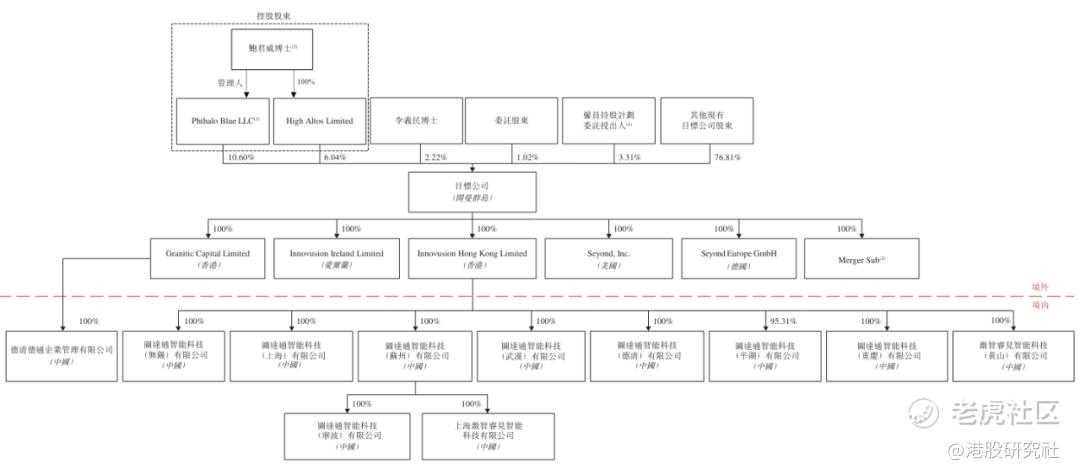 IPO前,鲍君威控制公司约20.97%投票权,其中,鲍君威通过旗下HighAltos Limited控制公司6.04%的投票权;通过Phthalo Blue LLC控制10.61%的投票权;通过员工持股计划控制3.31%的投票权。图达通股份约1.02%的投票权,其由委托股东根据投票委托协议授予鲍君威博士。