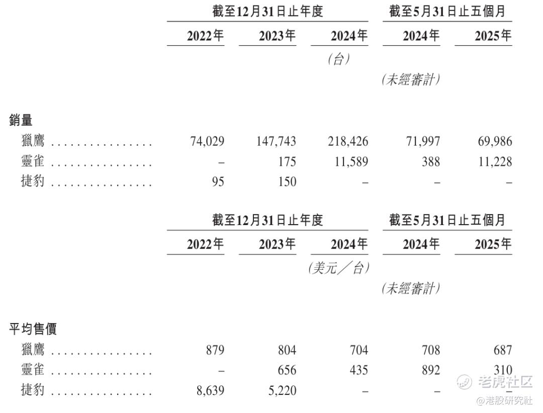 截至2025年5月31日,图达通共销售猎鹰系列69,986台,平均一台的售价为687美元;销售灵雀系列3486台,一台售价为310美元。