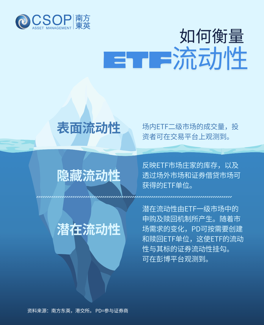 据港交所,ETP的流动性由三部分组成,分别是:表面流动性、隐藏流动性和潜在流动性。