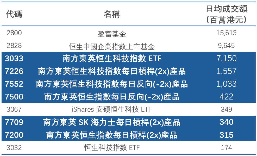 香港前十大活跃成交ETP榜单
