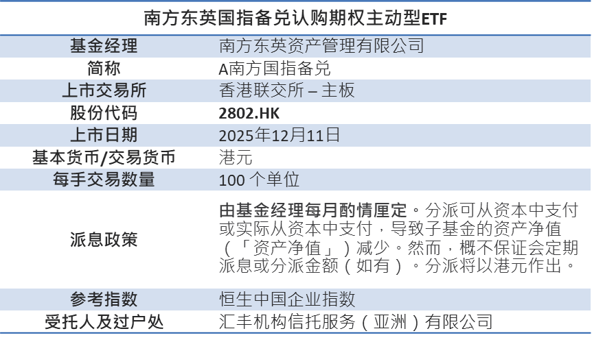 南方东英国指备兑认购期权主动型ETF (2802.HK)