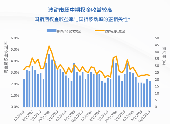 资料来源: *彭博, 2022/01 – 2025/10。国指期权金收益率乃根据 各月末期权成交价格/国指指数水平 计算得出。