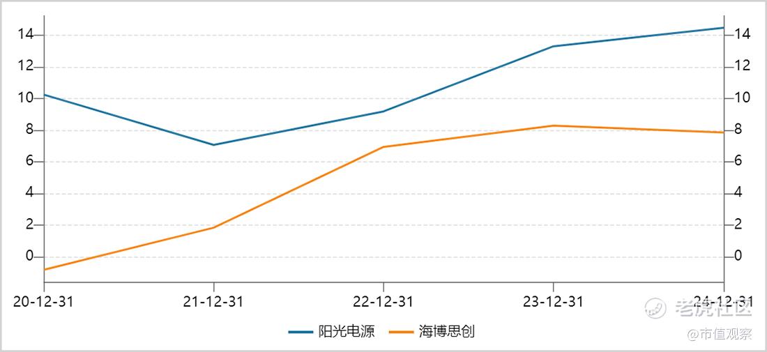 ▲阳光电源VS海博思创净利率走势图,来源:Wind