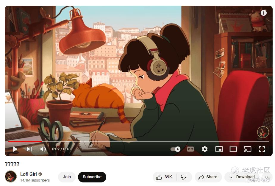 对比Lo-Fi类的YouTube频道缩略图,再对比一下Spirit City游戏截图。轻松休闲的YouTube频道拥有可爱的生物+安静的房间,Spirit City完美地复刻到了这一点。