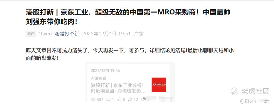 老猫打个新京东工业发的第一篇文章直接被和谐。