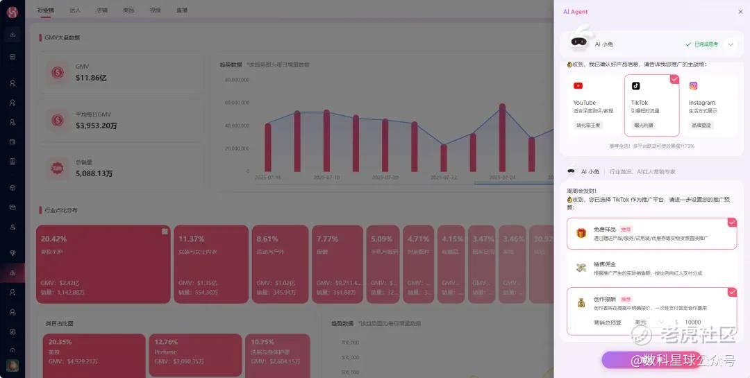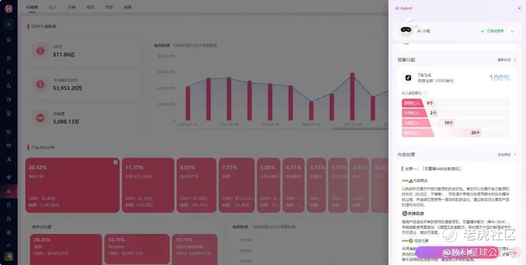 更关键的是,方案并非“一次性输出”。若用户对某部分不满意(如觉得头部达人预算过高),只需调整参数,系统会立马重新生成方案——在数科星球DigitalPlanet团队试用该产品后,发现该平台的方案可依据提示词的变化作出相应调整。