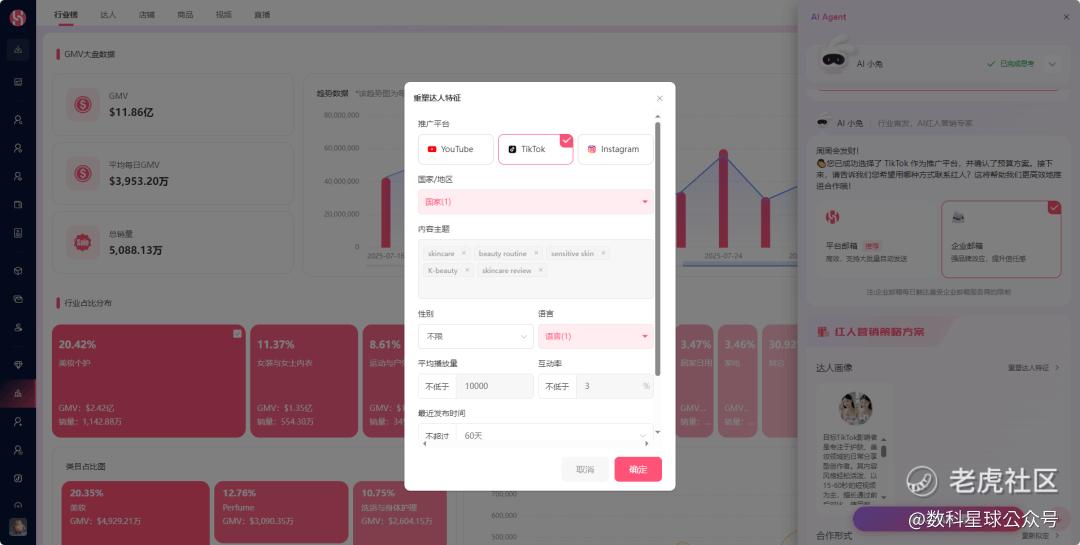 “找对达人”是达人营销的核心,但传统筛选方式往往停留在“粉丝量、互动率”等表面数据——女装品牌曾合作一位粉丝量50万的时尚博主,却发现其粉丝中60%是男性,最终推广效果惨淡;也有户外品牌找了互动率10%的达人,却因不垂直,对户外产品认知不足,对粉丝的说服力不强。