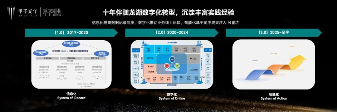 回顾龙湖的数字化转型历程,我们将这十年总结为三个阶段。虽然各家企业在谈论数字化转型时用的词汇大同小异,但在具体路径和最终效果上却存在差距。
