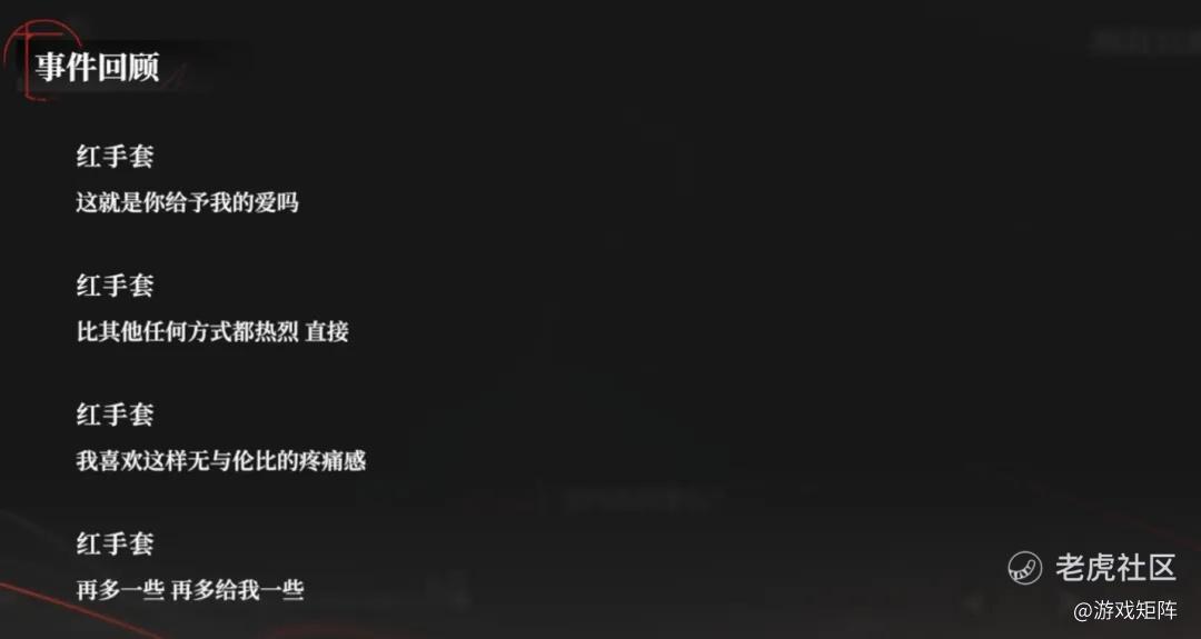 是“红手套”在私语中请求你给予他更多“痛楚”,也是“礼物”角色通过被拆开颈间丝带的动作,强化“所属物”的定位。