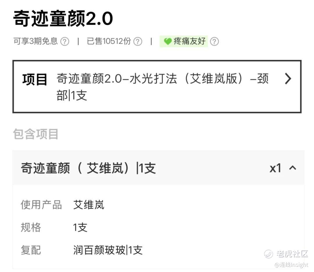 值得注意的是,新氧售卖的产品并非单纯的某个产品,而是多个功能性产品的复配。比如,奇迹童颜2.0是新氧将一支艾维岚与一支润百颜玻玻水光复配形成的产品,可以实现“童颜+水光”二合一的效果,再重新定价。