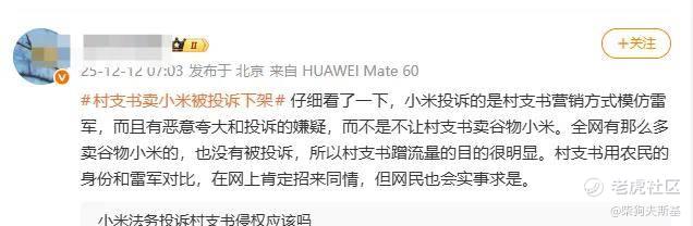 还有网友表示:一开始看到的时候我有些气愤的,但是等我把事件的来龙去脉都看了一遍以后,我觉得被投诉也不算冤。当某些节奏试图把商业维权和“欺压农民”划等号时,咱们得看清楚,被投诉的根本不是“卖小米”这个行为,而是某些人精心设计的“碰瓷式营销”和道德绑架。