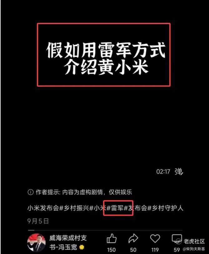 这个视频的开头就打上了“假如用雷军的方式介绍黄小米”,且在视频的文案说明部分,也加上了小米和雷军的话题。