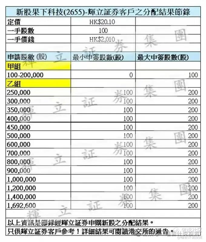 前几天宝济药业分配,一模一样的剧本,再演一遍——《港股打新——宝济药业分配出幺蛾子,全员抽签!猴子和乙头笑死,甲尾和顶头槌哭晕在厕所!》,只不过这次果下的申购资金量大概是宝济的一半,手数都是3万多少,所以顶头槌好歹能中1-2手。