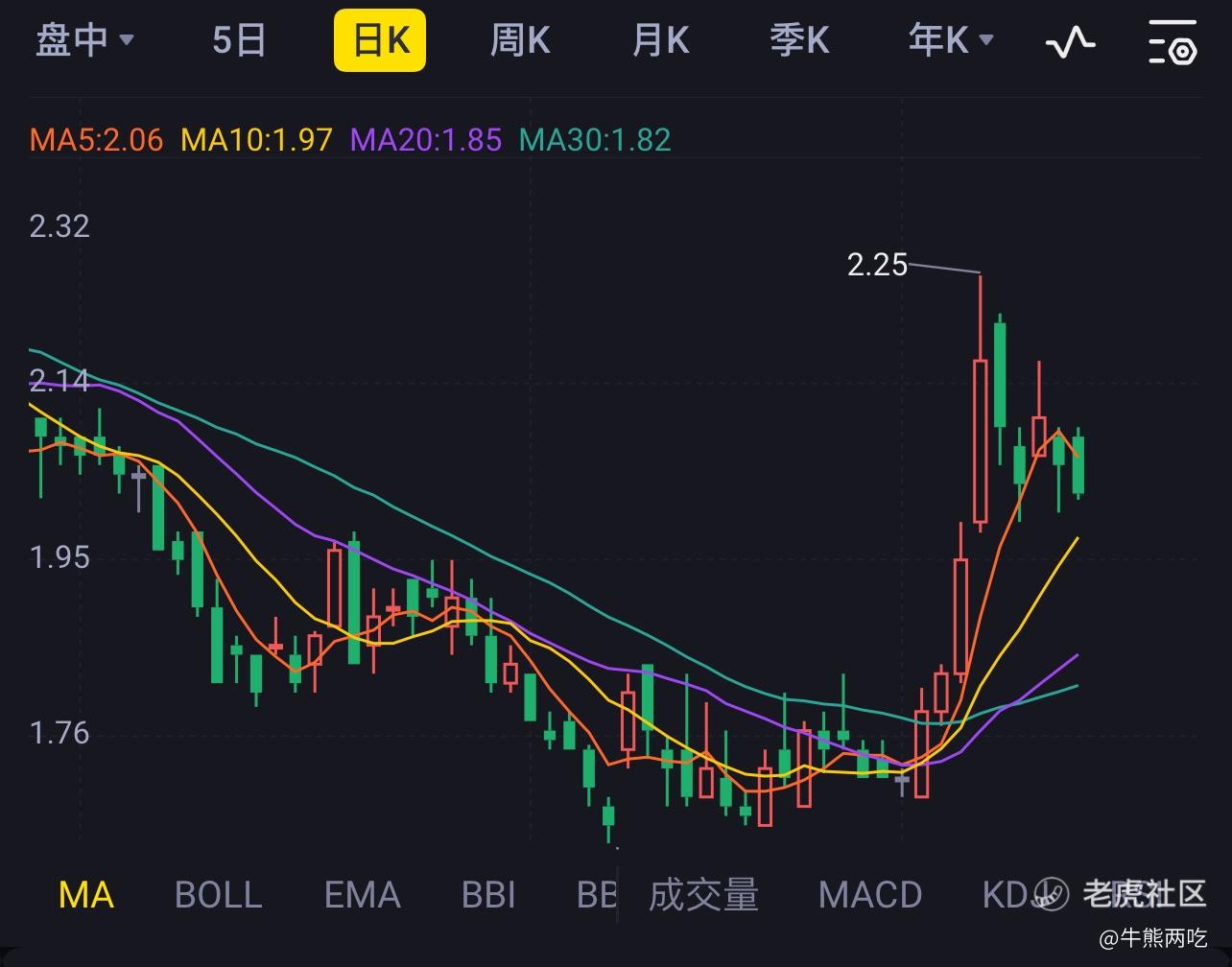 日k线来看,需要在2块这里横盘一段时间,继续调整一下了