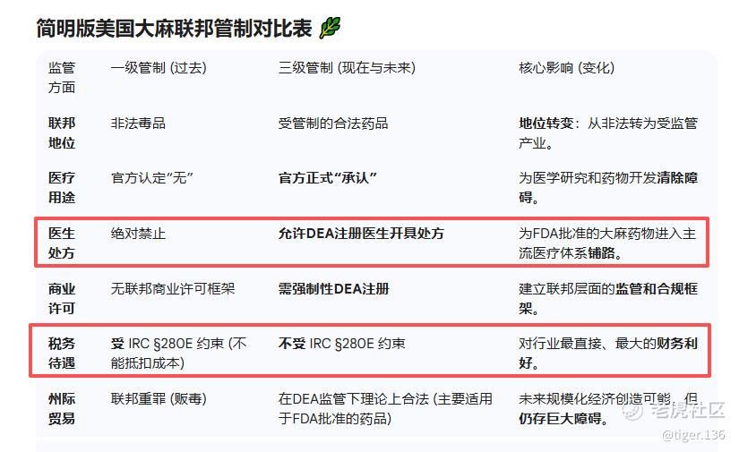 最主要区别,一个是在医学上价值得到承认,并且可以合法开具处方药。第二个就是不再受到IRC 280E税务的约束。这个非常重要,直接决定一个公司的质量。