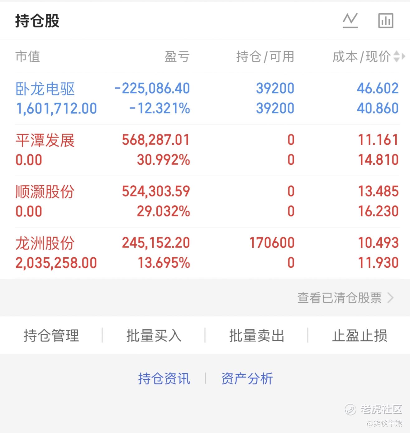 市场动向不取决于你的分析,也不在乎你是谁,它只会碾平所有挡住她趋势发展的反对者。是市场决定你,而不是你决定市场,尽管你可以识别市场规律。即使市场真的是错误和不理智的,但在你的力量弱于她之前,你最好屈服于它,并紧随于它。市场不在乎谁对错,而在乎谁更有力量,决定方向的力量。$龙洲股份(002682)$ $平潭发展(000592)$ $顺灏股份(002565)$