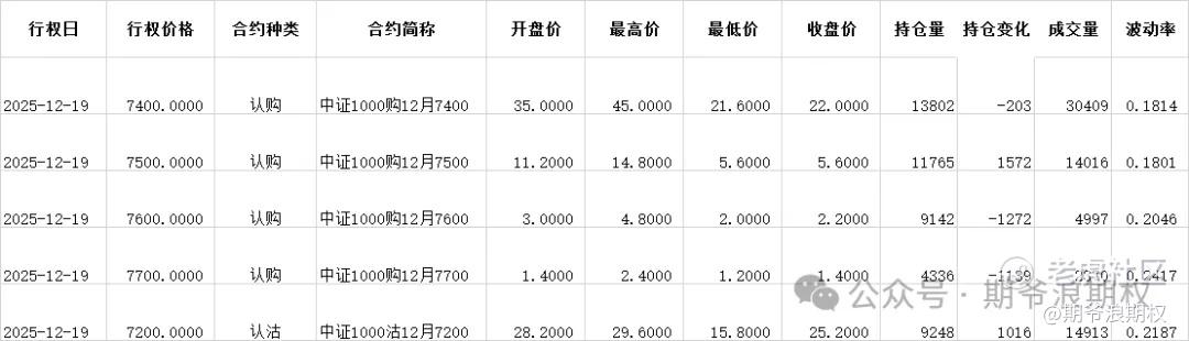 (4)中证1000期权:12月最大持仓范围7000-7400,今收7309.08,下跌0.84%。期权12月主力合约,认购7500增仓1600张,其他行权价几乎全是减仓,集中在7600-8000,合计3300张;认沽有增有减,增仓集中在7100-7300,合计1400张,其他行权价都是减仓,主要集中在7400-7600,合计1100张。变化超过1000张的仓位如下: