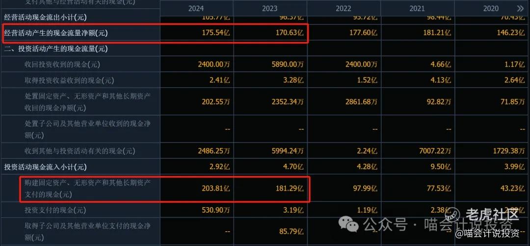 2. 把经营活动现金流和自由现金流混淆,完全无视CAPEX,也就是喵老师常说的“买买买”;