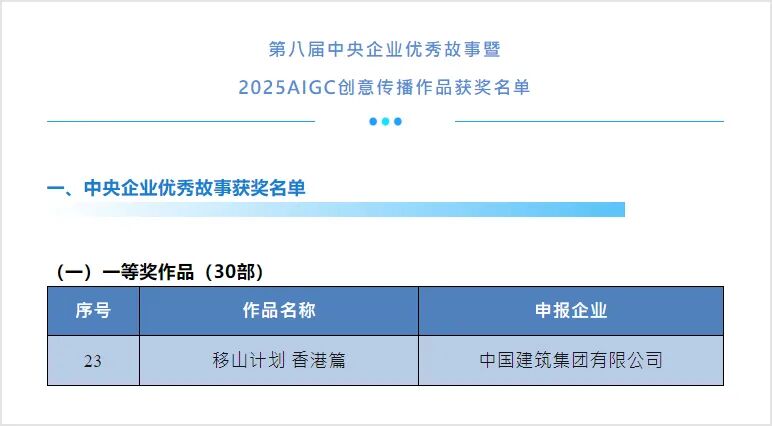 星球研究所联合中国建筑国际集团创作的建筑科普视频《移山计划·香港篇》,从众多作品中脱颖而出,荣获中央企业优秀故事一等奖。