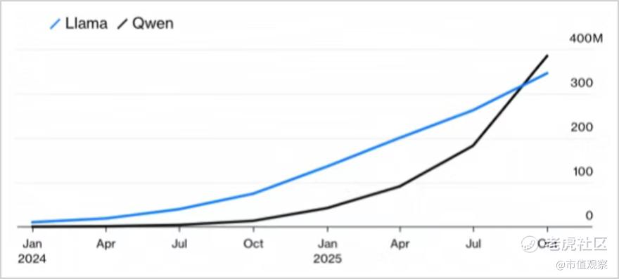 ▲Qwen VS Llama下载量走势图,来源:ATOM