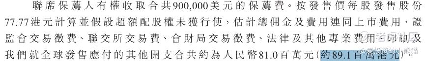 然后这个票招股书上按发售价77.77港元计算,公开的上市所有开支总额约为8910万港元,募资额约10.86亿港元,占比约8.20%%,开支相比募资额算是比较少了。