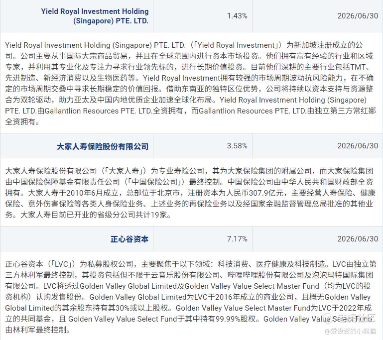 大家人寿保险股份有限公司认购500万美元,作为大型保险机构的长期投资,体现了机构投资者对林清轩稳定增长前景的看好。