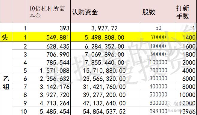乙头需要认购资金550万,乙组的各档融资所需要的本金还有融资金额对应如下表: